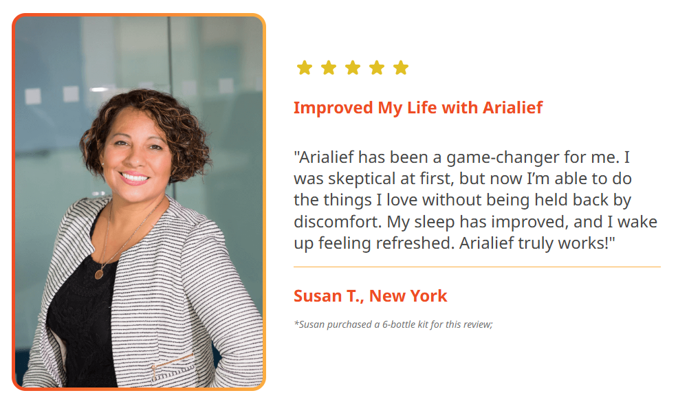 “Arialief has been a game-changer for me. I was skeptical at first, but now I’m able to do the things I love without being held back by discomfort. My sleep has improved, and I wake up feeling refreshed. Arialief truly works!”